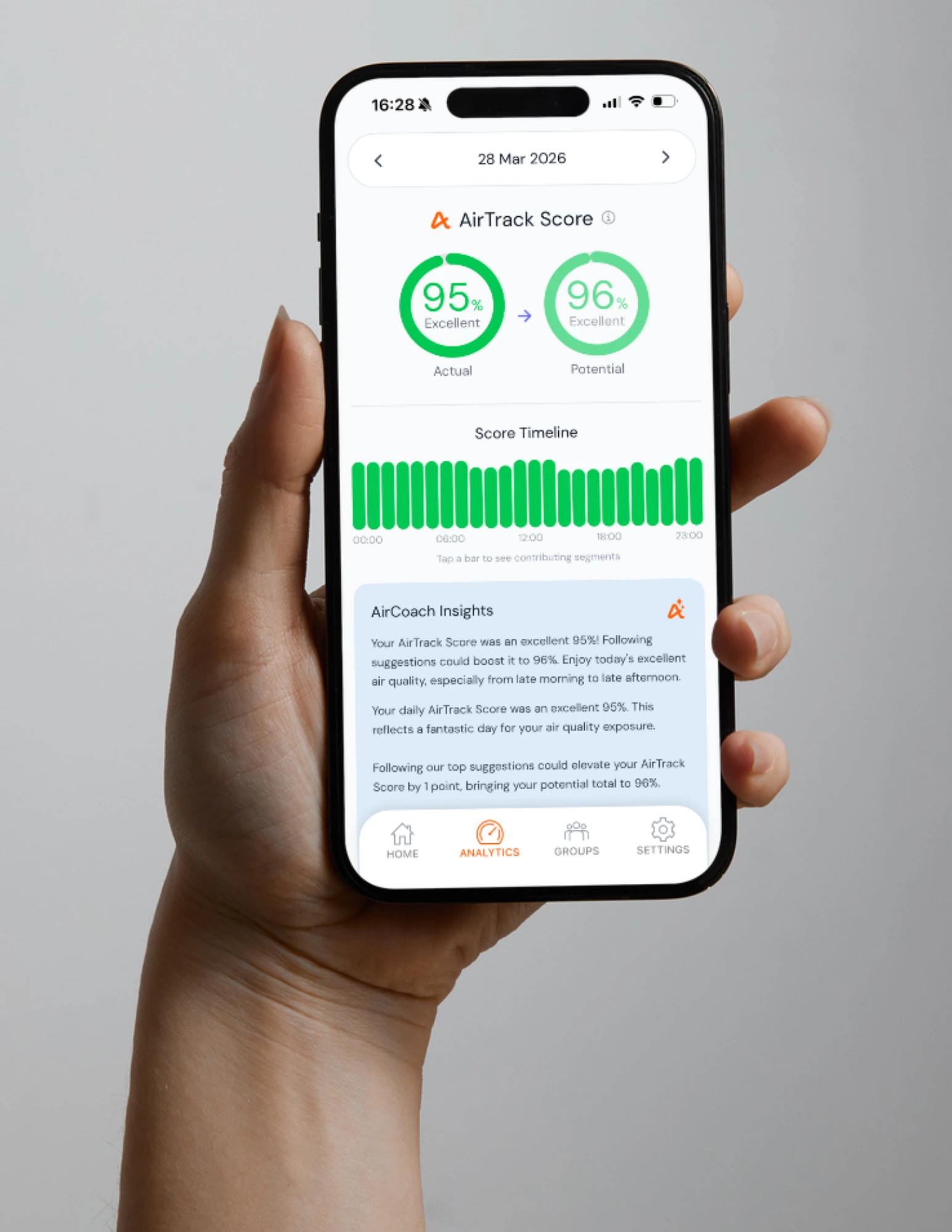 Whether you're running, cycling, commuting, or simply at home, AirTrack provides personalised insights into how the air around you affects your health and performance. By tracking real-time pollution levels 24/7 indoors and outdoors we help you make healthier daily choices, optimise your workouts, and protect your long-term health.