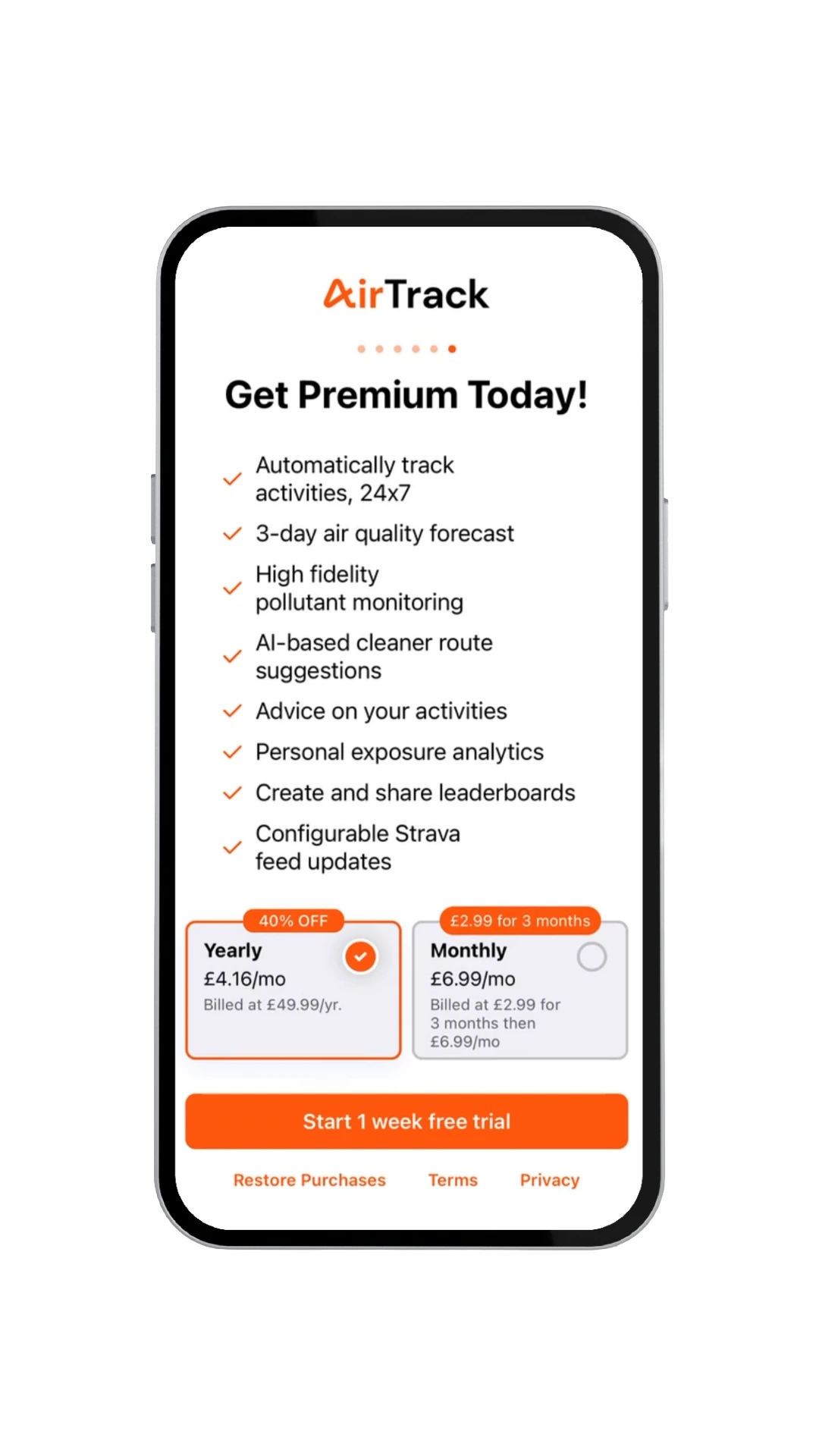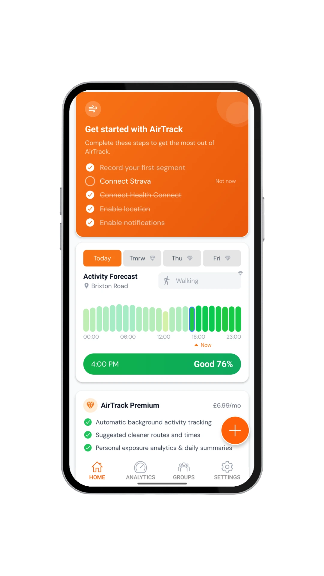 Sign up for free above to create an AirTrack account. You can choose whether to link to Strava, Apple Health, or Google Health Connect. After that, go about your day as normal.